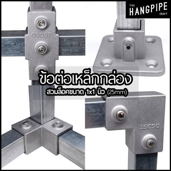ข้อต่อเหล็กกล่องชนิดสวมล็อคDIY โครงสร้างง่ายๆ เช่น โต๊ะเก้าอี้ โครงสร้างโซลาร์เซล ชั้นวางของ ใช้ได้กับโลหะได้ทุกชนิดที่ขนาดสวม OD 25.4mm ซื้อได้ตามร้านขายโลหะทั่วไป เหล็กหรือเหล็กกัลวาไนซ์กล่อง 1×1 นิ้ว สแตนเลสกล่อง ขนาด 201 304 1×1 นิ้ว อลูมิเนียมกล่อง ขนาด 1×1 นิ้ว วัสดุของข้อต่อทำจากอลูมิเนียมหล่อมีความหนากว่าข้อต่อเหล็กปั้มแข็งแรงไม่เป็นสนิมโดยธรรมชาติของเนื้อของวัสดุ มีผิวชิ้นงานและน้ำหนักที่ดีAluminium casting fitting for metal tube มีทั้งสีดำและแบบอลูมิเนียมธรรมชาติ มีเหล็กกล่องสีดำความยาวต่างๆ ตัดขายพร้อมใช้งาน